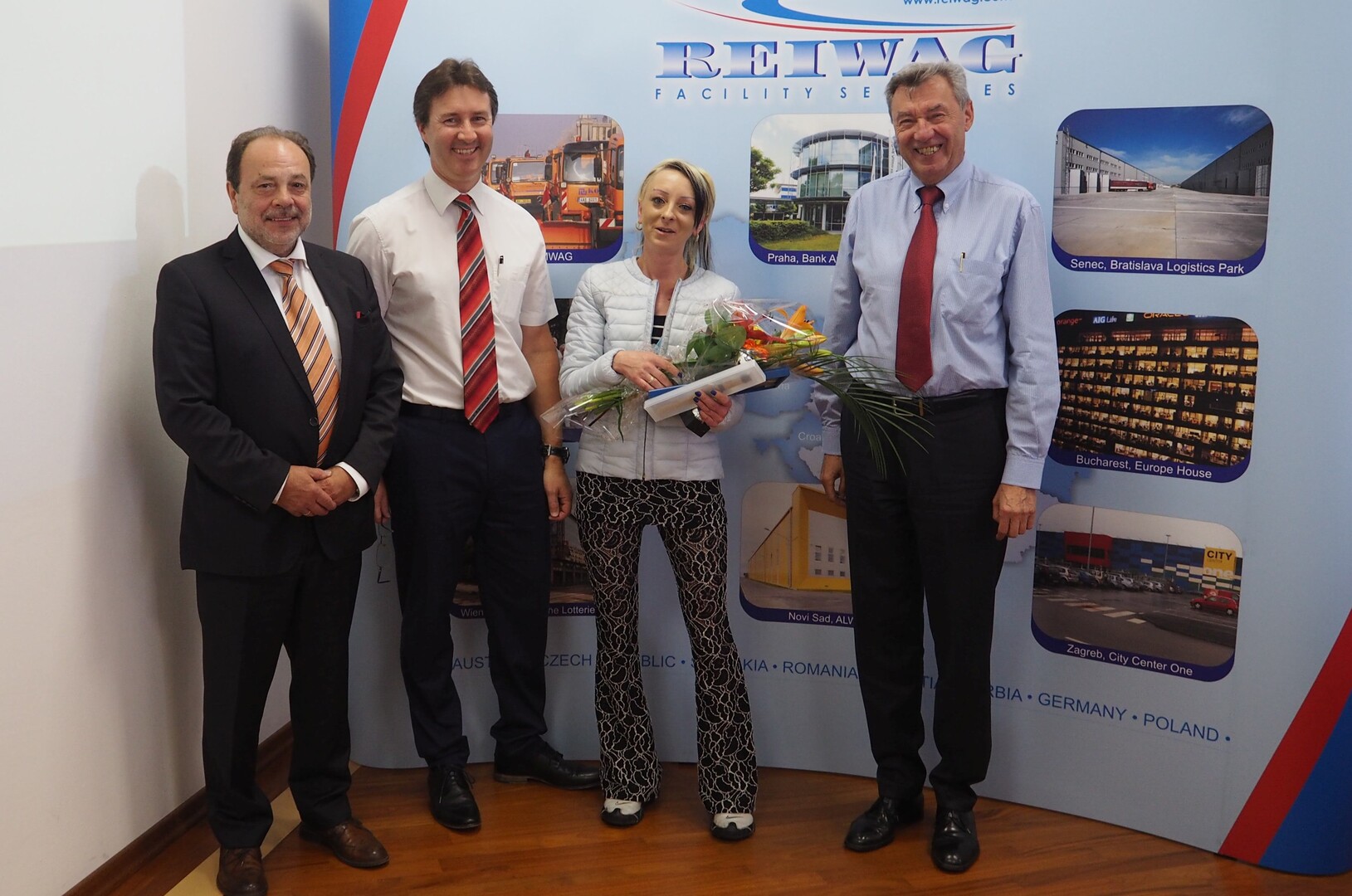 Stellvertretend für das gesamte REIWAG-Team gratulierten Herr Wagner, Herr Dittrich und Herr Tiefenbacher Frau TECHMANSKA zum 5-Jahres-Jubiläum und dankten ihr für ihre ausgezeichnete, langjährige Arbeit!